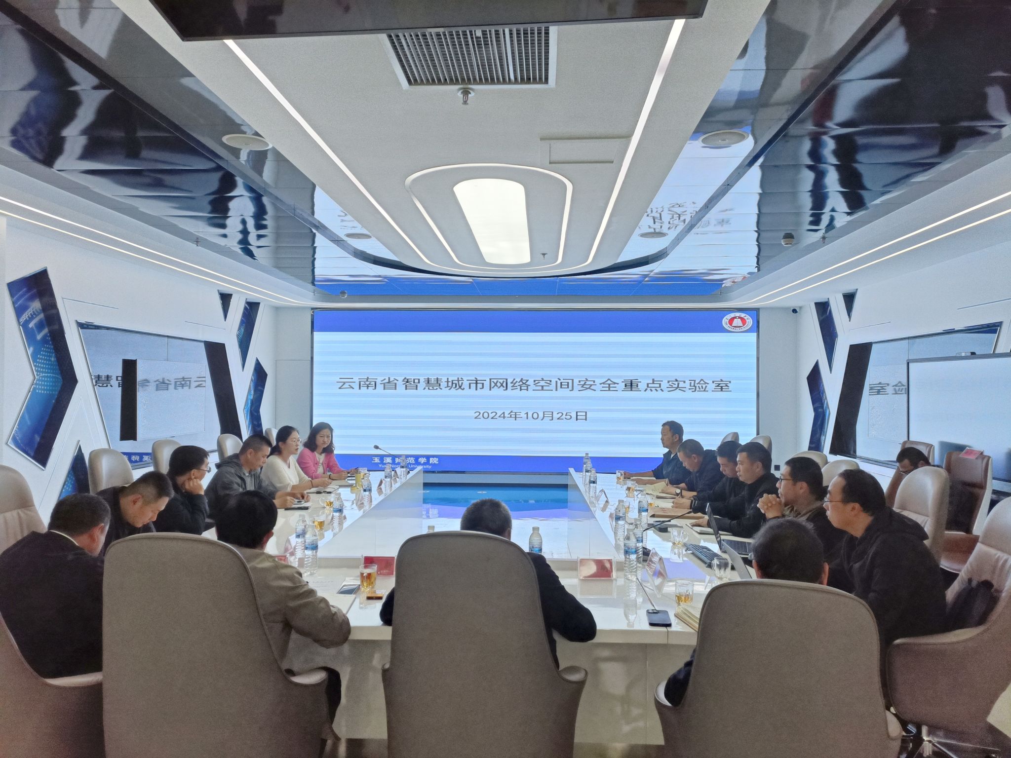 10月25日下午,玉溪师范学院校长段红云,副校长章新、李明、杨伟,以及科技处、教务处、财务处、审计处、资产经营有限公司等单位负责人到云南省智慧城市网络空间安全重点实验室调研指导工作。工学院领导班子成员、重点实验室全体成员参加调研会议。