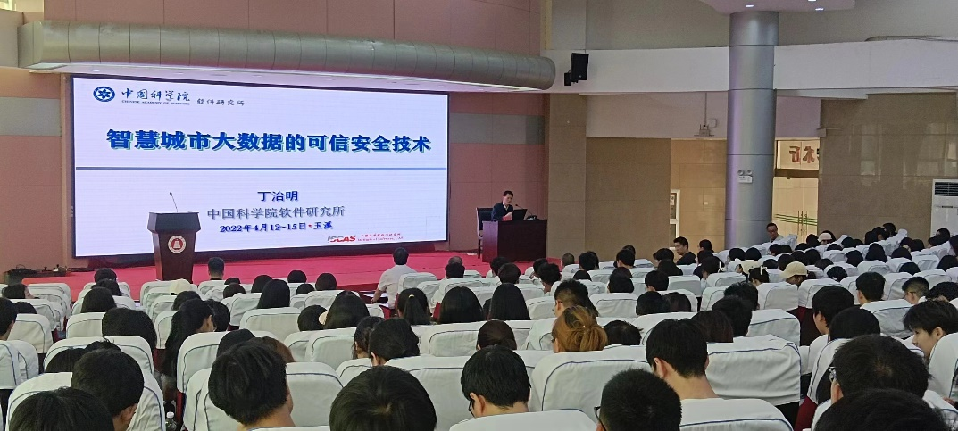 4月13日下午,中国科学院软件研究所特聘研究员、俄罗斯自然科学院外籍院士、俄罗斯工程院外籍院士、中国科学院时空数据管理与数据科学研究中心主任丁治明做客玉溪师范学院“红塔讲坛”,为我校师生作题为《智慧城市大数据的可信安全技术》专题讲座。